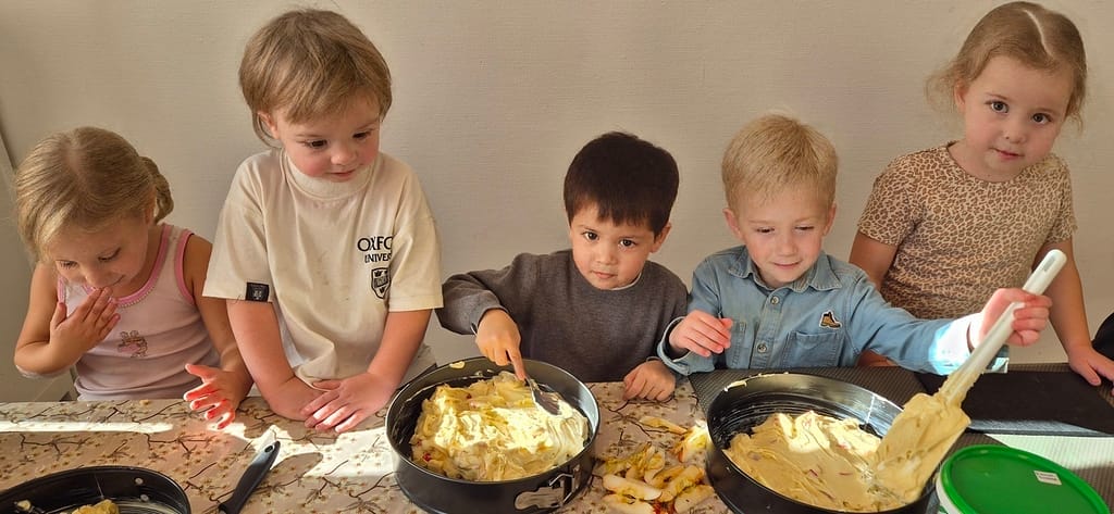 For at sikre nærvær og fordybelse arbejder vi dagen igennem i mindre grupper. Hver dag tager vi på tur ud af huset – enten til skoven, stranden eller engene – hvor børnene oplever naturen på tæt hold. Vi har to el-ladcykler og en børnebus, der giver os mulighed for at tage på eventyr lidt længere væk